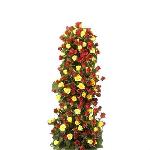 Each of the 100 mixed-color roses in the 100 Mix Roses Arrangement's standing presentation exudes a distinct charm and elegance. Carefully placed to produce a magnificent focal point, ideal for expressing coziness and elegantly and beautifully commemorating important events