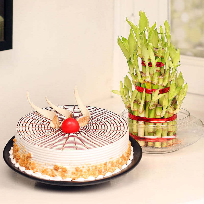 A Rhythm of Love skilfully blends a gentle touch with organic grace. This bundle comes with a 500-gram Butterscotch Cake, which has a delicious, buttery flavor, and a Three Layer Lucky Bamboo, which is symbolic of wealth and good fortune.