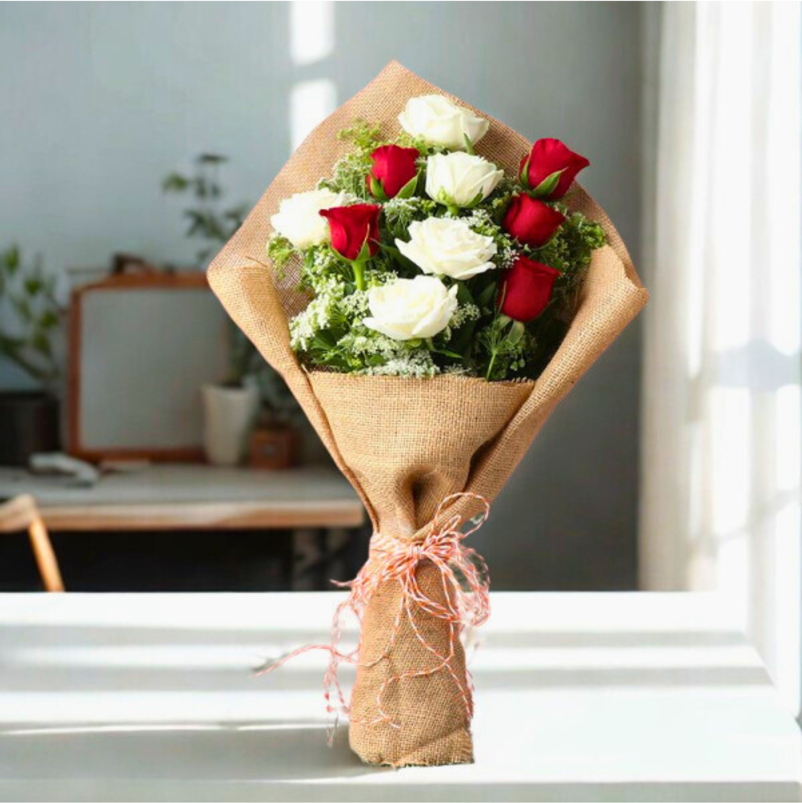 - 10 Mixed Roses (5 Red and 5 white) in Jute Packing