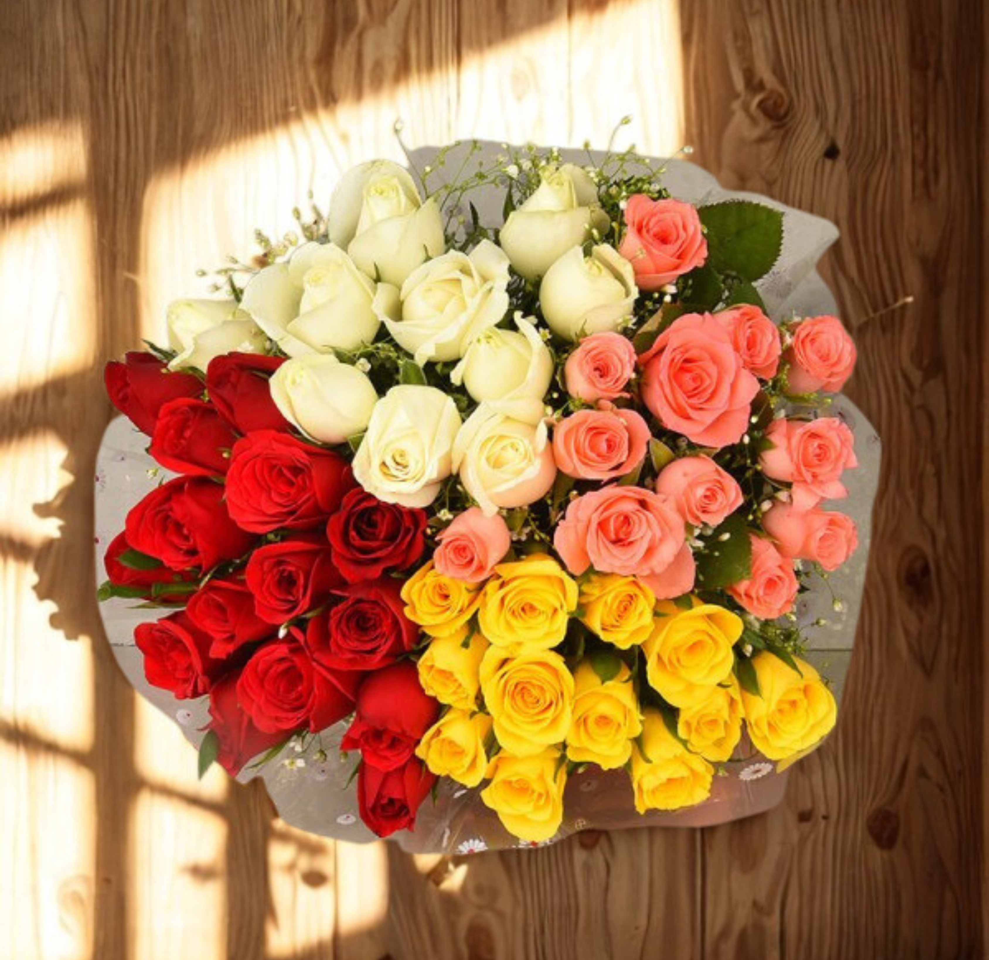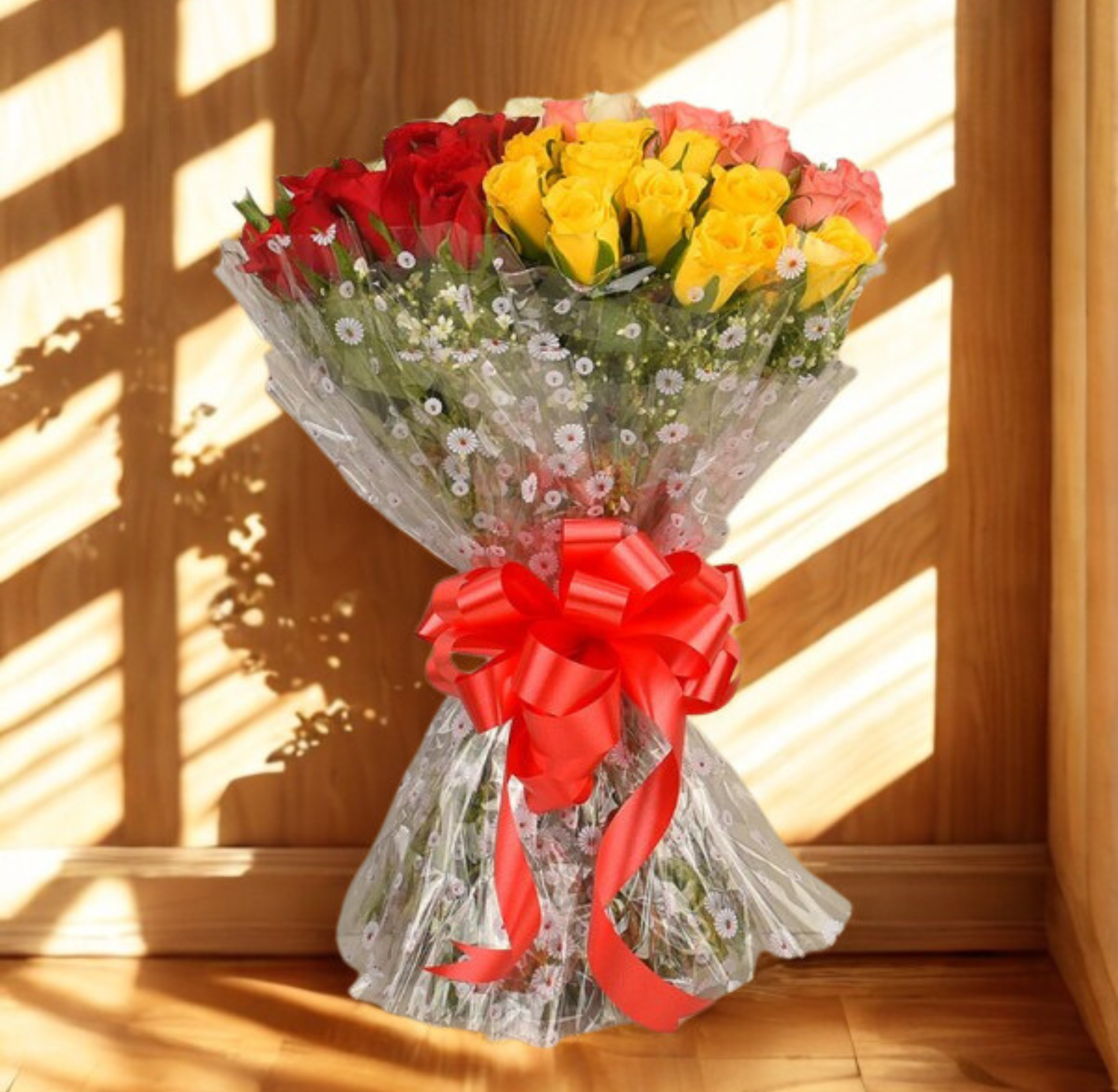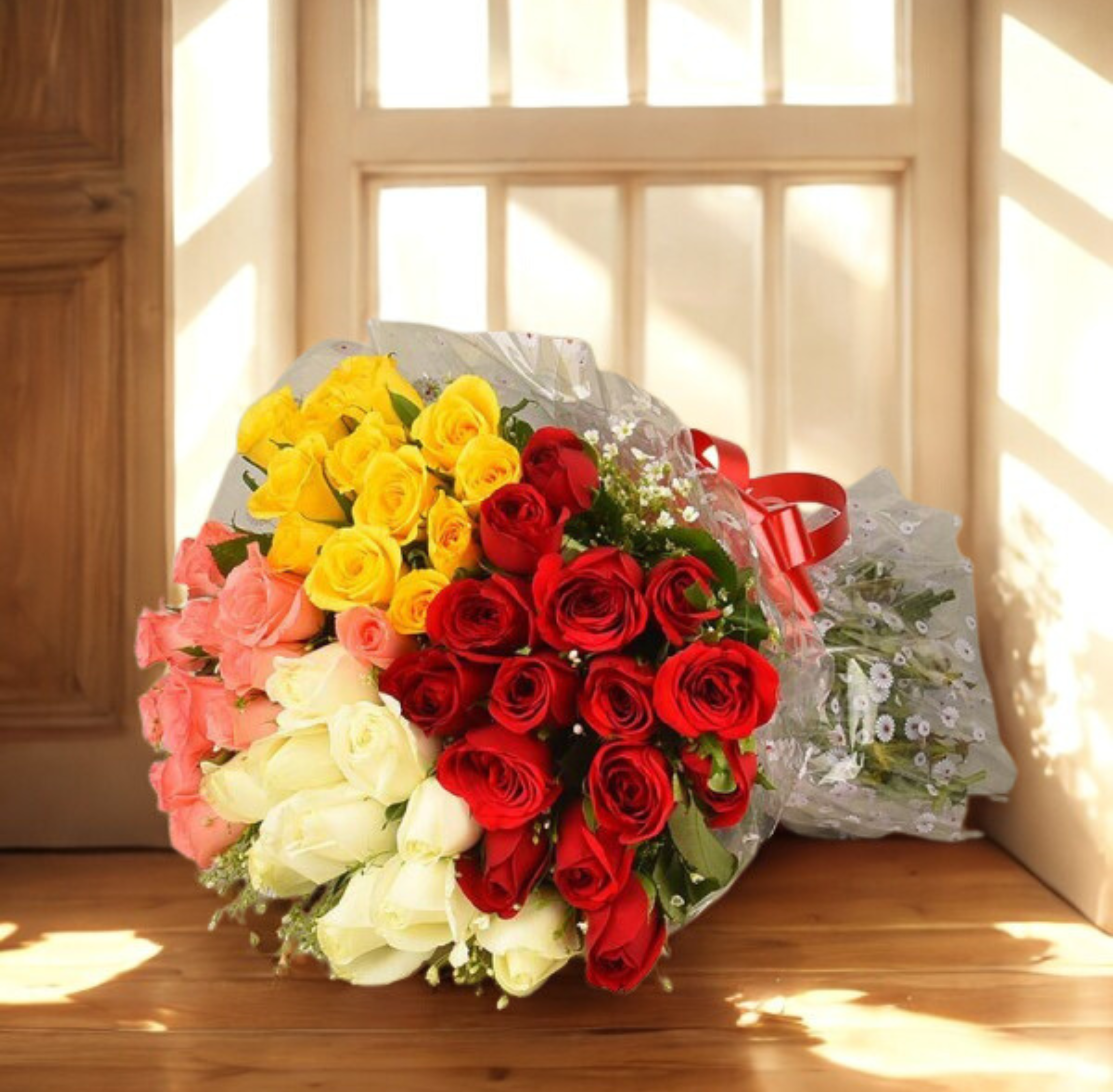Colours always brighten up our mood and fill our heart with immense happiness. To spread happiness in the special celebrations of your friends and family, send regards with this magically beautiful bouquet of 50 multicoloured roses.