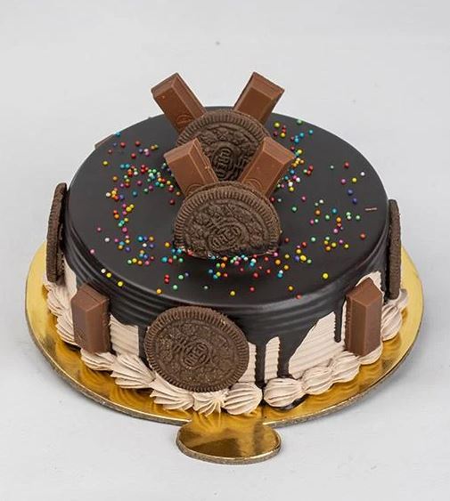 Surprise the chocolate lovers in your life with this Chocolaty Surprise Cake, a decadent creation that’s sure to satisfy every sweet tooth! This round cake is frosted with a rich, creamy ganache that envelops the cake in luxurious chocolate flavor. Sprinkled with crunchy Oreo chunks and beautifully garnished with Oreo cookies and mini KitKat bars, this cake is an indulgent treat that brings together the best of chocolate in every bite. Perfect for birthdays, celebrations, or any special occasion, this cake is sure to leave everyone craving for more.