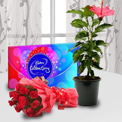 Combos Of Flowers, Chocolate and Plants :This charming combination is ideal for expressing gratitude and love. It consists of: