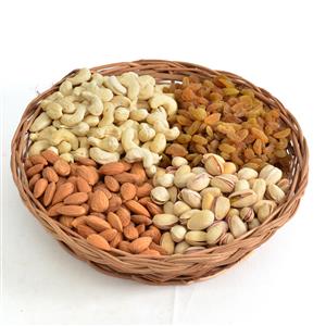 Indulge in a delightful assortment of premium dry fruits with our Dry Fruits in Cane Basket. This thoughtfully curated basket includes: