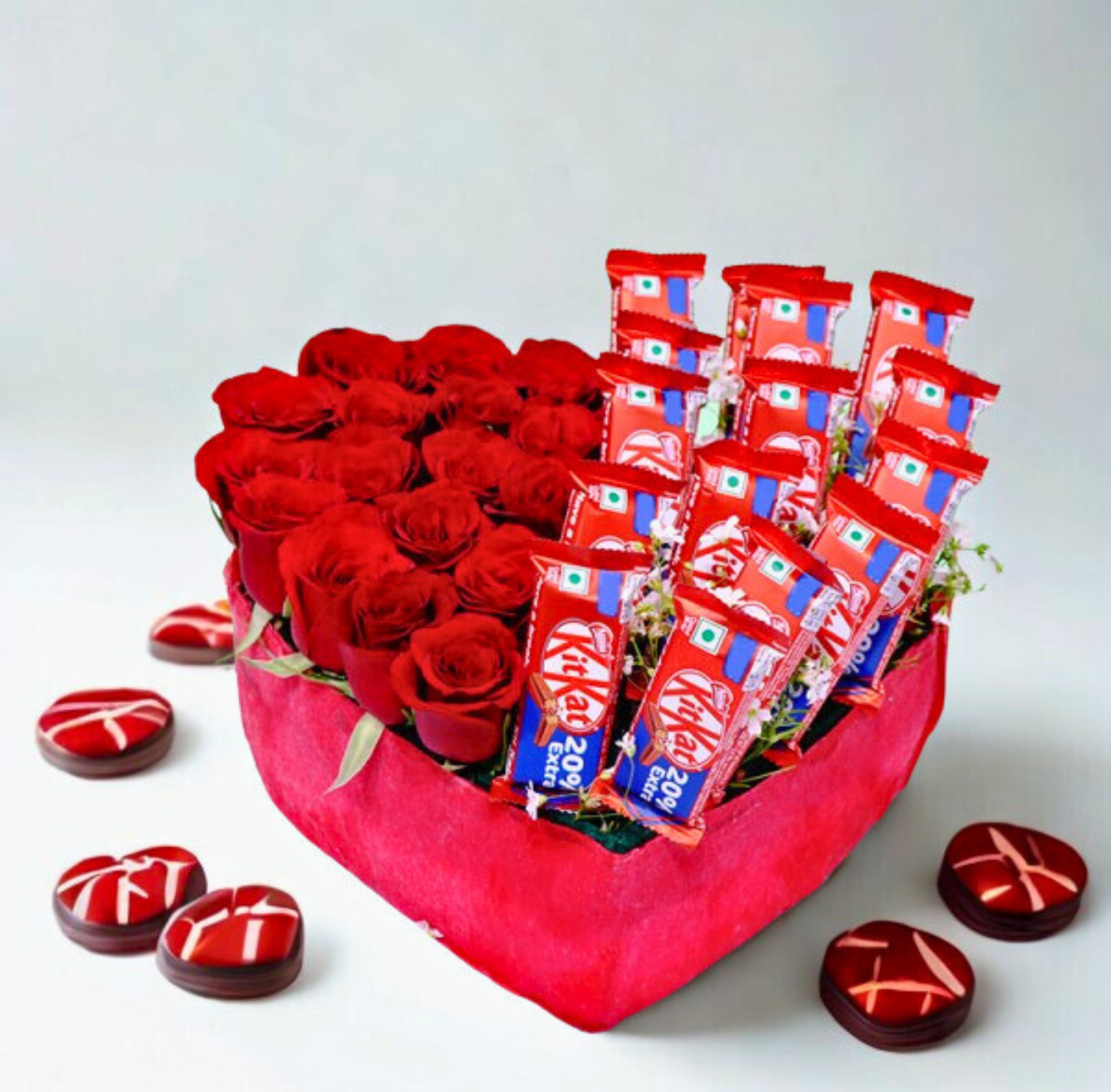 Indulge in the perfect combination of romance and sweetness with a basket of roses and chocolates. The passionate beauty of red roses paired with the rich, irresistible flavor of chocolates makes for a truly unforgettable gift. A loving, delicious choice for any occasion!"This version includes keywords like "romance," "basket of roses and chocolates," and "unforgettable gift," which can help improve search visibility while keeping the tone romantic.