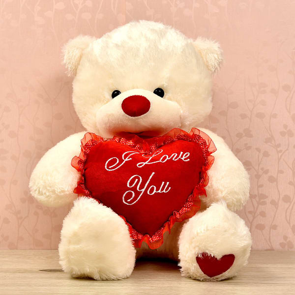 This irresistibly cute teddy bear is the perfect way to express your love and affection. Crafted with soft, plush fur, it’s designed to be cuddled and cherished. With its sweet, gentle expression and arms lovingly wrapped around a vibrant crimson heart, this teddy bear symbolizes warmth, care, and tenderness.