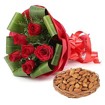 “Luxurious Wishes” expresses genuine feelings in a way that is both elegant and decadent. This considerate present comes with 250g of almonds and six red flowers in a pretty basket. The outfit is the ideal way to send your best wishes on any occasion because it is embellished with red packing paper and a matching ribbon.