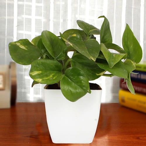 Money Plant in White Pot: With its luxuriant, colorful beauty, the Golden Money Plant will elevate any area. This plant, which is well-known for its ability to filter the air and its lovely leaves, is a great addition to both indoor and outdoor spaces. It gives any design a revitalizing touch and grows well in a variety of lighting settings.