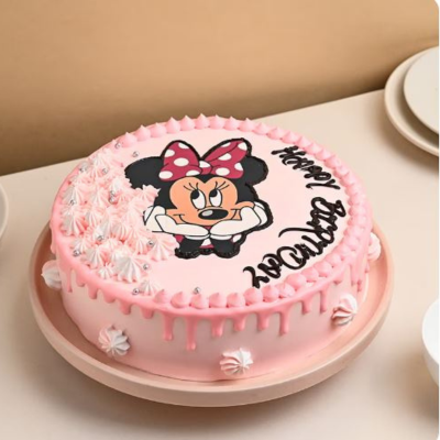 Celebrate your little one’s special day with our Pink Playful Minnie Mouse Theme Cake! This charming cake features a delightful photo of Minnie Mouse on top, adorned with pink and white frosting. Perfectly crafted to bring joy and excitement, it’s an ideal centerpiece for Minnie Mouse-themed parties.