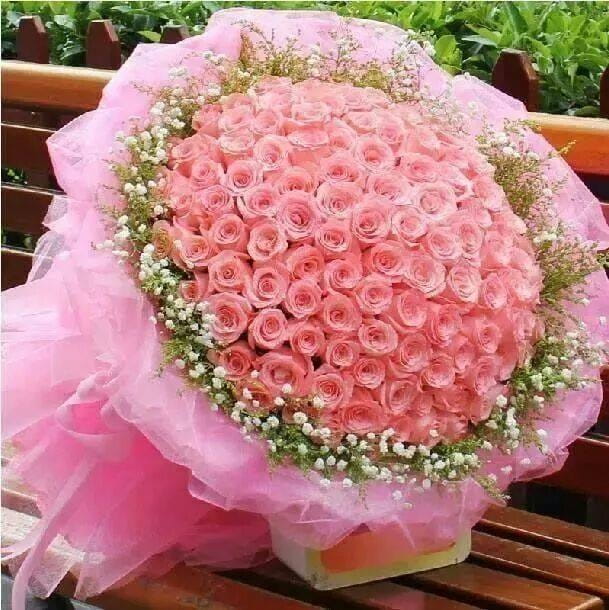 A lavish arrangement of 100 pink roses, all beautifully wrapped, is sure to make your special someone swoon. These are exquisitely created with a ribbon, which enhances their elegance, and are wrapped with seasonal fillings. This collection will undoubtedly be a memorable display of warmth.