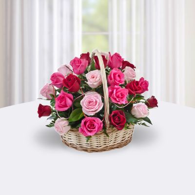 Forty beautiful roses in alluring tones of pink and red make up the "Red and Pink Rose Basket Display." Every rose is carefully chosen for its beauty and freshness, guaranteeing a colourful and striking arrangement.