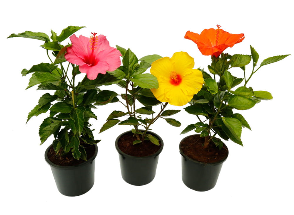 Set of 3 Hibiscus Plants: This colorful collection of hibiscus plants gives any outdoor area a splash of color and a touch of the tropics. Each plant delivers a lovely display of huge, vibrant flowers and comes in yellow, orange, and pink.