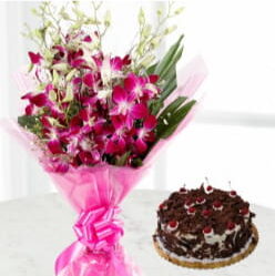 Memorable Moments is a beautiful combination that is ideal for producing enduring memories since it blends the elegance of orchids with the decadence of chocolate cake. This lovely gift bundle consists of: