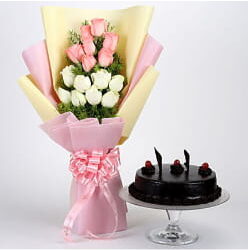 Cake and White & Pink Roses Combo is the ideal combination of sophistication and decadence, created to elegantly commemorate any special occasion. This beautiful combination consists of: